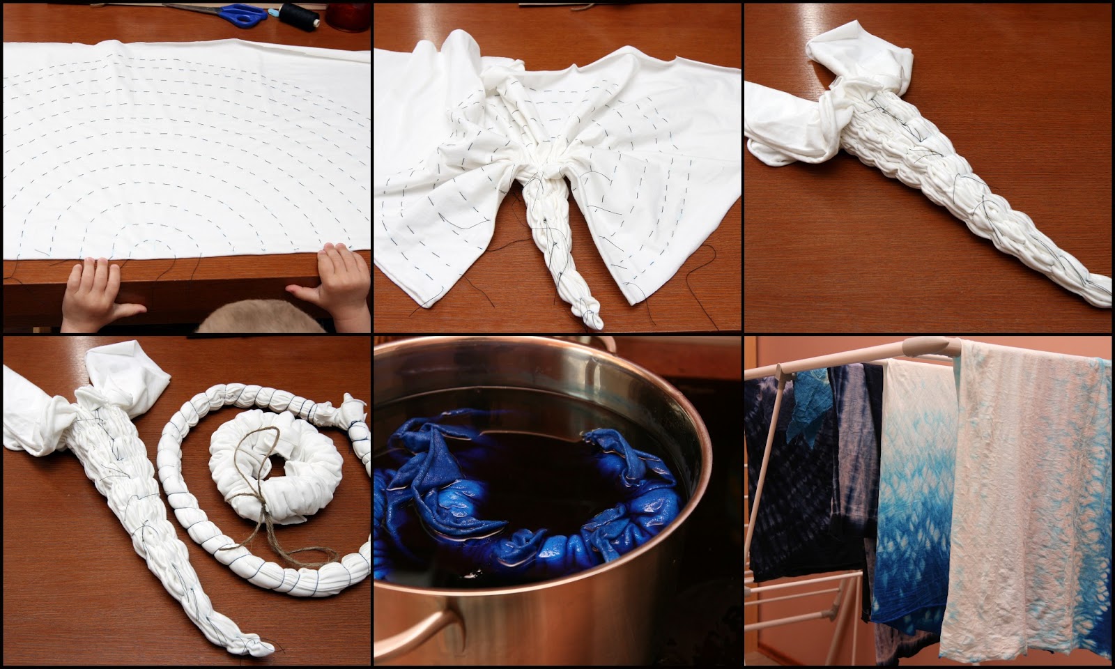 Nevarēja būt batikas krāsas? Apģērbs sākumā ir jāsarullē un jāsasien (?), bet pēc tam jāiemērc krāsā.