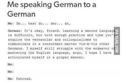 Mācos vācu valodu - man jauna skolotāja, kura brauc uz mājām. Maksā dārgi, bet ņemam uzreiz pa 2h, un mājās ir tīrs un smuks, jo tak skolotāja nāk un viss ir skaisti. Bet nu viņa vienīgi var tikai no rītiem, jo vakaros viņai jau sensenie blatnie klienti, tāpēc man mazliet ar laiku jāmenedžē. Bet laba viņa ir! Nevis liek zubrīt gramatiku kā skolā, bet (nezinu kā viņa to panāk) runājam un sarunas gaitā viņa kaut kā maģiski iepin jaunās lietas un es palieku gudrāka un nav bail runāt.